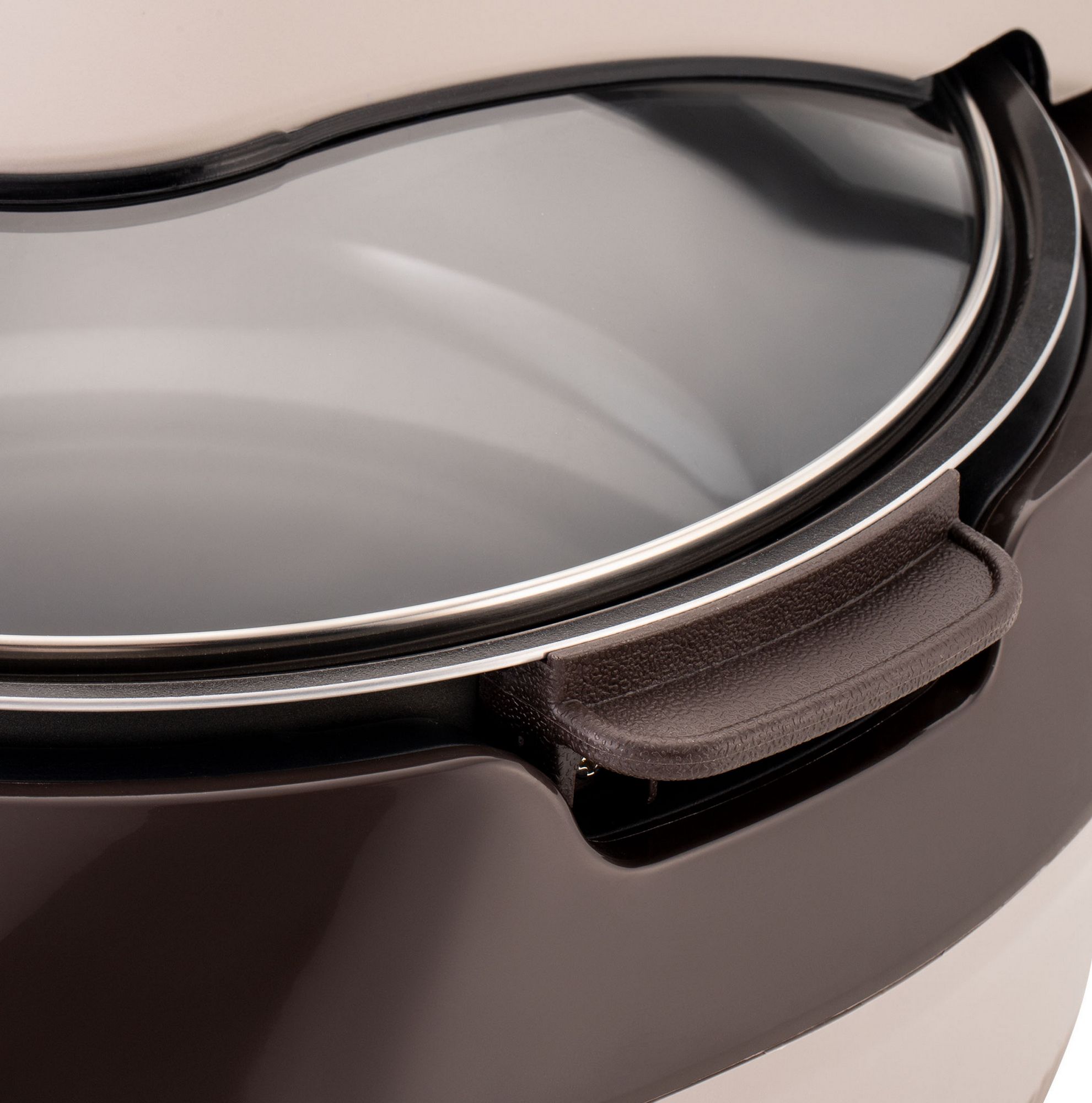 Стеклянная крышка позволяет наблюдать за готовностью блюд не открывая ее.
