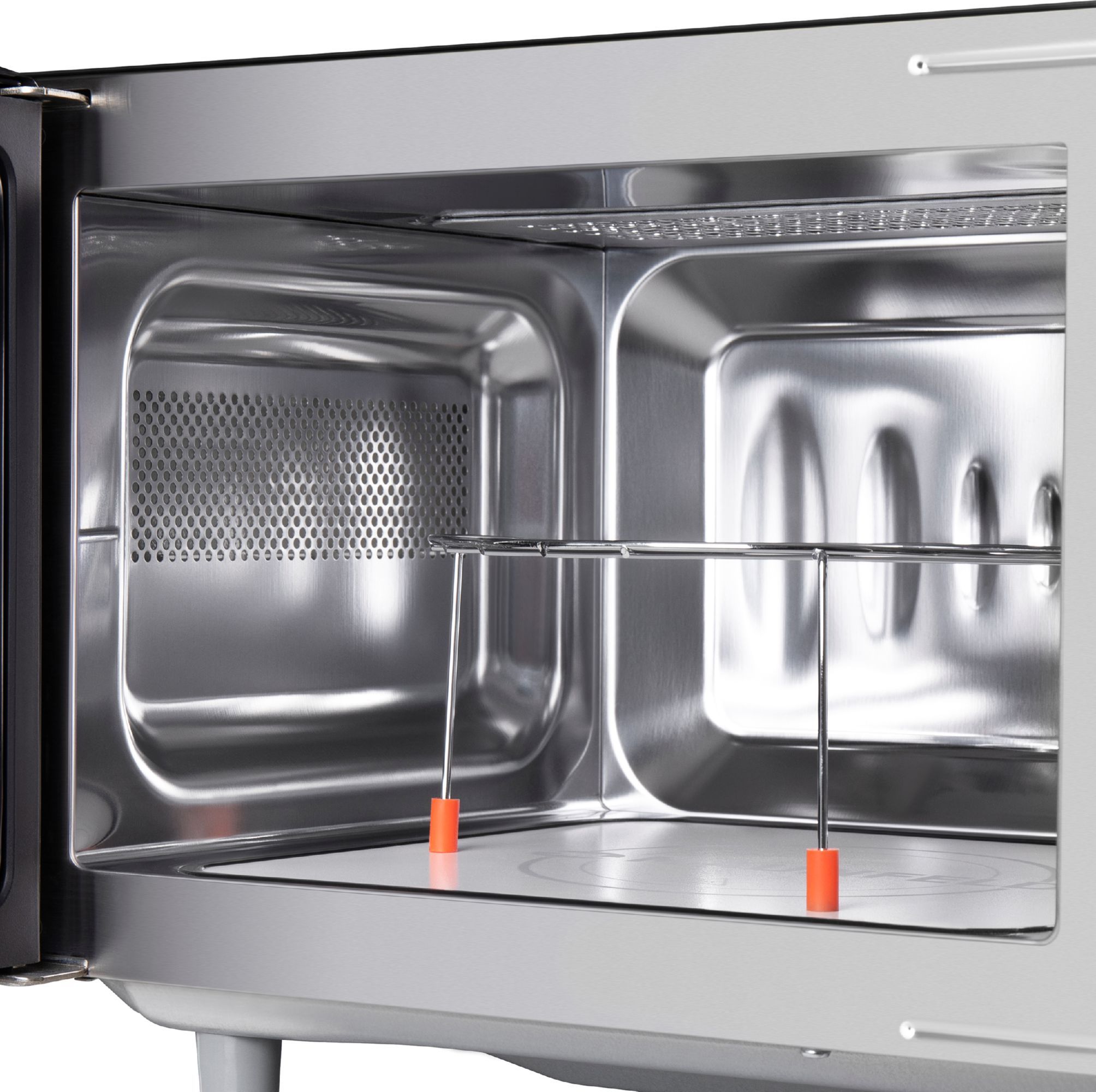 Внутренняя камера, сделанная из высококачественной нержавеющей стали, имеет реальный объем в 20 л благодаря кварцевому грилю и отсутствию поворотного столика. Мощный магнетрон располагается под керамической панелью на дне. Подобная конструкция, к тому же, сильно облегчает уборку плиты.