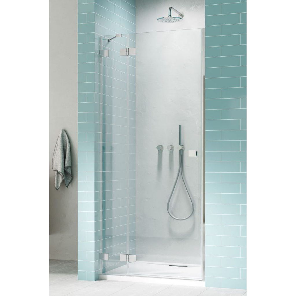 Essenza Pro – коллекция кабин разных форм, дверей и шторок, в которых стационанрое стекло закреплено к стене с помощью кронштейна, а не профиля. Допустимы два варианта монтажа: с уплотнительным профилем, или без него. Створка двери подвешена на латунных петлях и открывается только наружу.