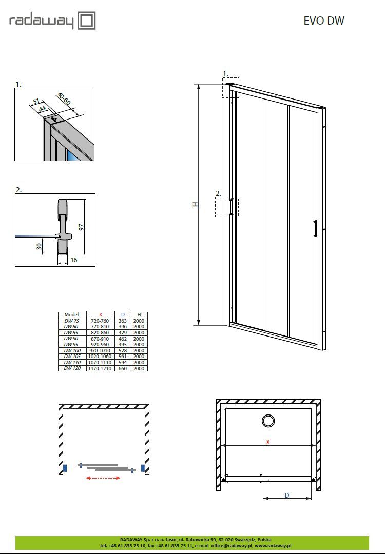 Коллекция Evo это практические раздвижные двери для любой, но особо для маленьких ванных комнат. Благодаря 3-секционной раздвижной двери даже при узких проемах (75-90), вход довольно широкий. Трех-секционная раздвижная дверь смонтирована уже на фабрике. В ванной комнате достаточно присверлить к стене.