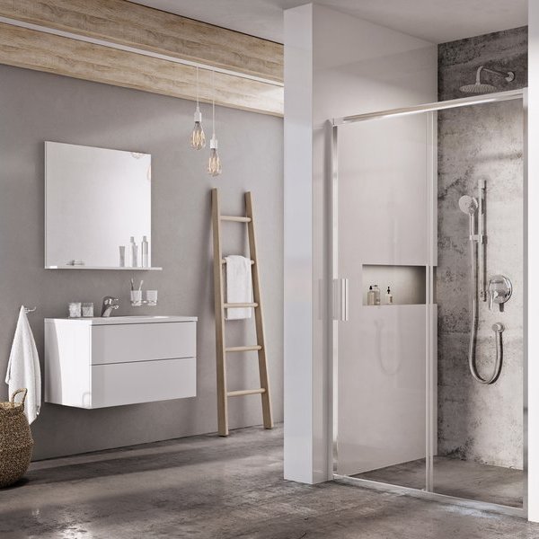 Изделие состоит из одной неподвижной части и одной подвижной - раздвижной двери. Устанавливается в облицованную кафелем нишу на поддоны RAVAK Perseus, Perseus Pro, Perseus Pro Flat, Perseus Pro Chrome, Gigant, Gigant Pro, Gigant Pro Flat, Gigant Pro Chrome или непосредственно на пол со встроенным душевым каналом.