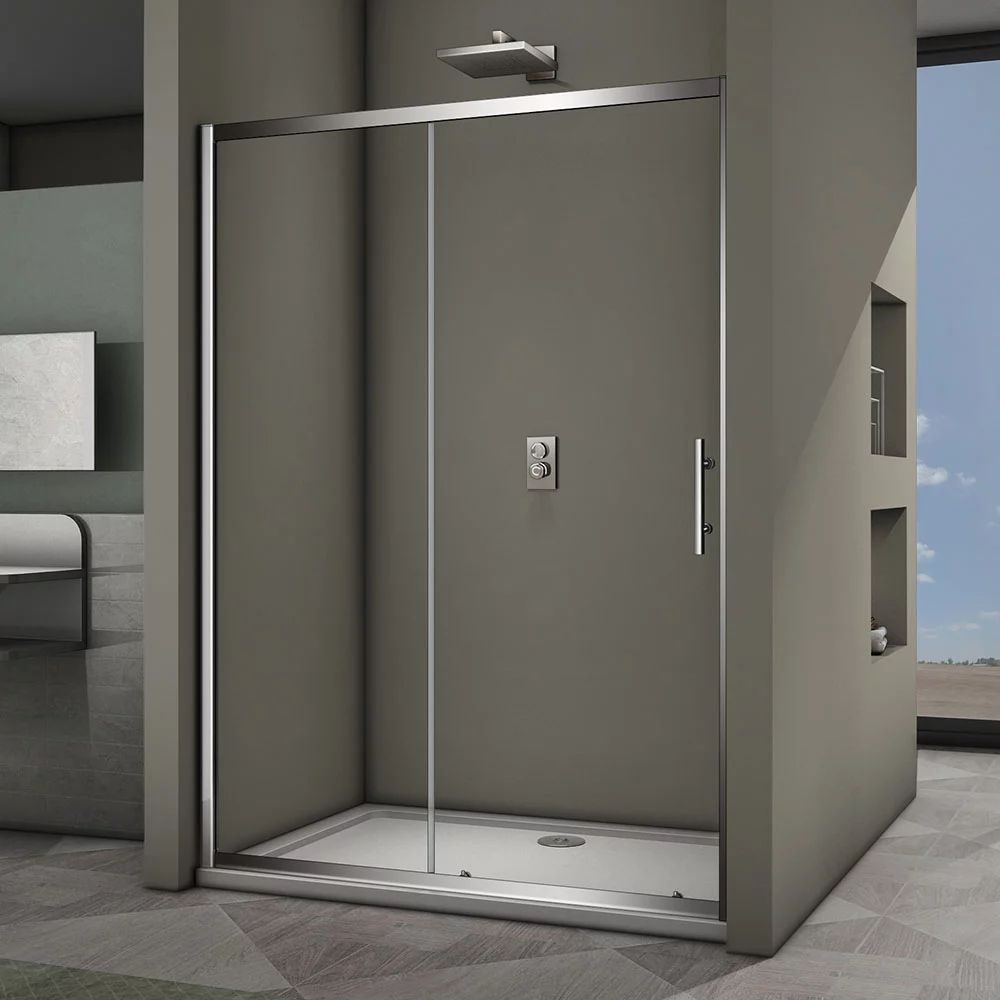 Раздвижная дверь и одно неподвижное стекло. Стекло закаленное безопасное 6 мм. Стекло обработано Easy Clean. Магнитные уплотнители. Профиль анодированный алюминий. Регулируемые двойные ролики из нержавеющей стали. Ручки открывания двери из нержавеющей стали. Универсальная установка открывания двери. Поддон приобретается отдельно. Комплектуется с боковой панелью KP-02, образуя Г и П-образный душевой угол RV-063.