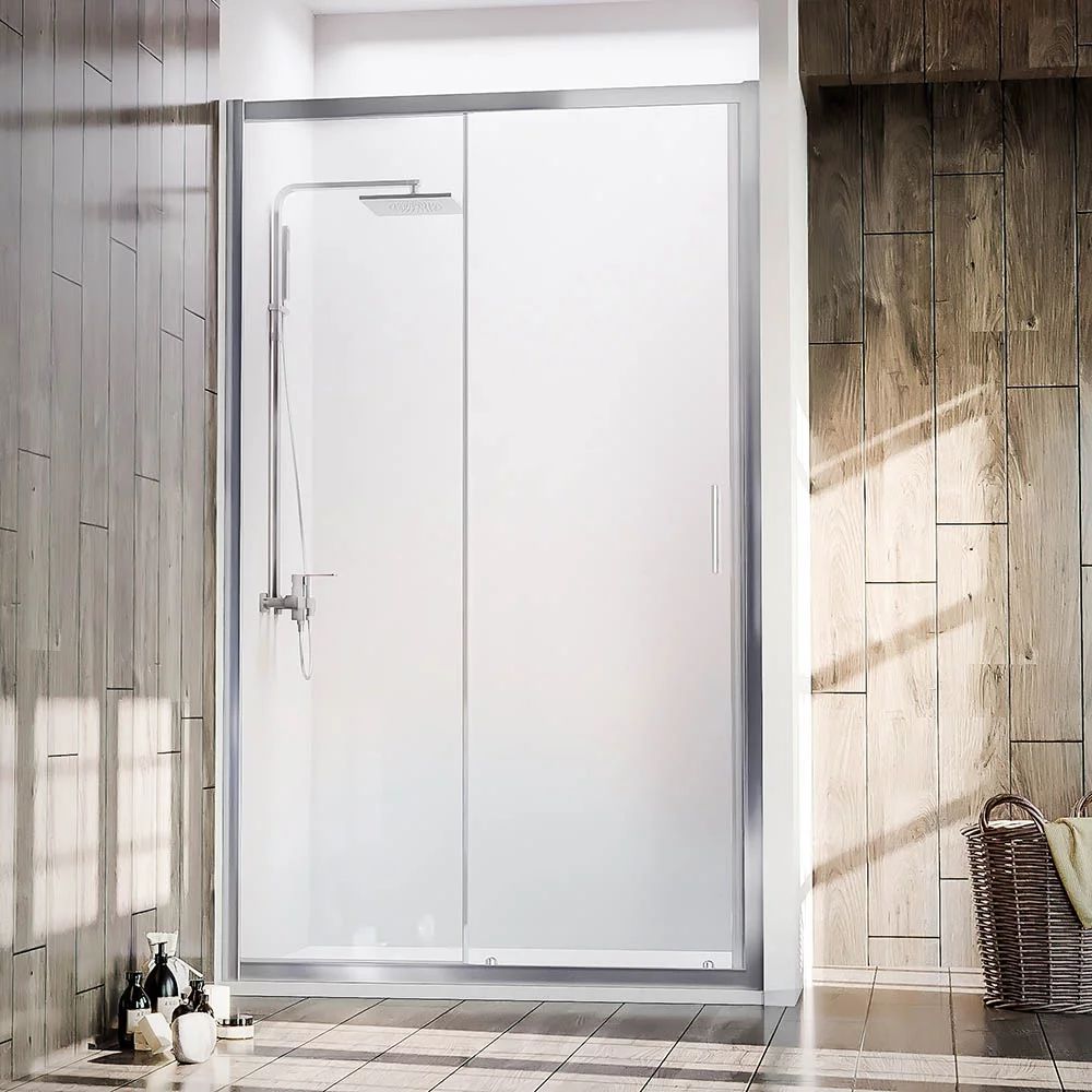 Душевая дверь раздвижная. Раздвижная дверь и одно неподвижное стекло. Стекло закаленное безопасное 6 мм. Стекло обработано Easy Clean. Магнитные уплотнители. Профиль анодированный алюминий. Регулируемые стальные двойные ролики. Ручки из нержавеющей стали. Универсальная установка открывания двери. Поддон приобретается отдельно. Комплектуется с боковой панелью KP-05, образуя Г и П-образный душевой угол RV-072.