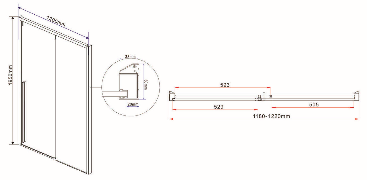 Душевая дверь из безопасного закаленного стекла толщиной 8 мм. Высота двери 195 см. Регулировка ±2 см. Черный матовый профиль из алюминия. Доводчики, обеспечивающие плавное закрывание двери, стекло с нанопокрытием Easy Сlean, удлиненная ручка.