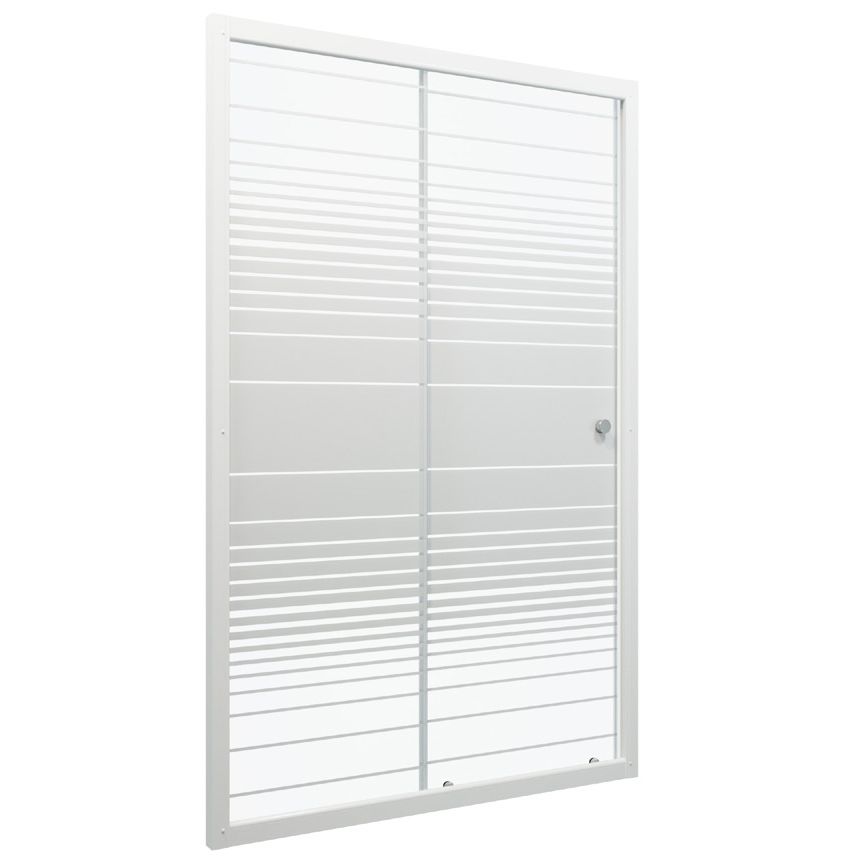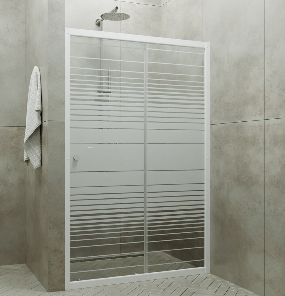 Раздвижная дверь для душевой ниши. Белый профиль. Безопасное закаленное стекло с полосами толщиной 4 мм.