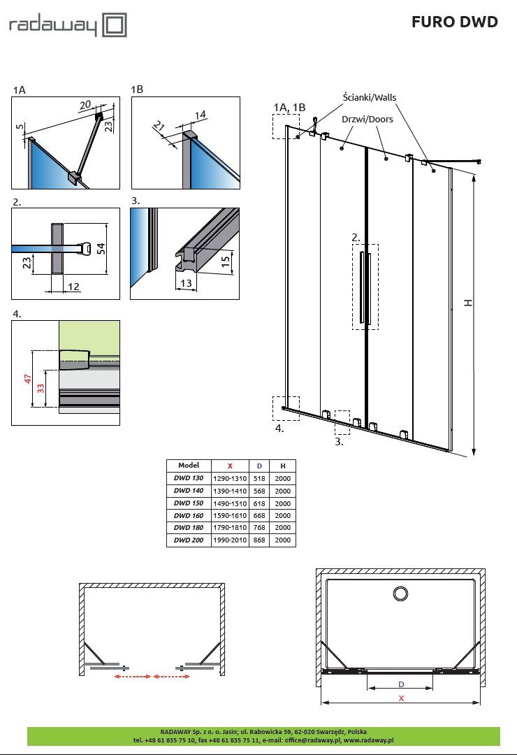 Безопасное закалённое стекло толщиной 8 мм, согласно стандарту PN:EN 12150:1. Стекло крепится к стене с помощью пристенных профилей (с регулировкой). Крепеж-фиксатор с инновационным тормозом раздвижного стекла. Крепеж-фиксатор с инновационным тормозом раздвижного стекла. Защитное покрытие помогает содержать чистоту на поверхности стекол. Благодаря водоотталкивающим свойствам капли воды не удерживаются на поверхности стекла и быстро стекают, не оставляя следа. Изделие доступно в нескольких вариантах стекла. Это изделие подлежит модификациям. Возможность сделать гравировку на стекле. Ширину входа можно увеличить на 30мм заменив вертикальную дверную ручку на врезную ручку (только хром / black). Замену ручки оформляется через конфигуратор.