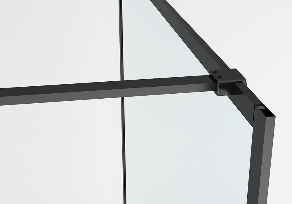 Душевая перегородка для ванной комнаты с держателем для полотенца. Высота перегородки 200 см. Черный матовый профиль.