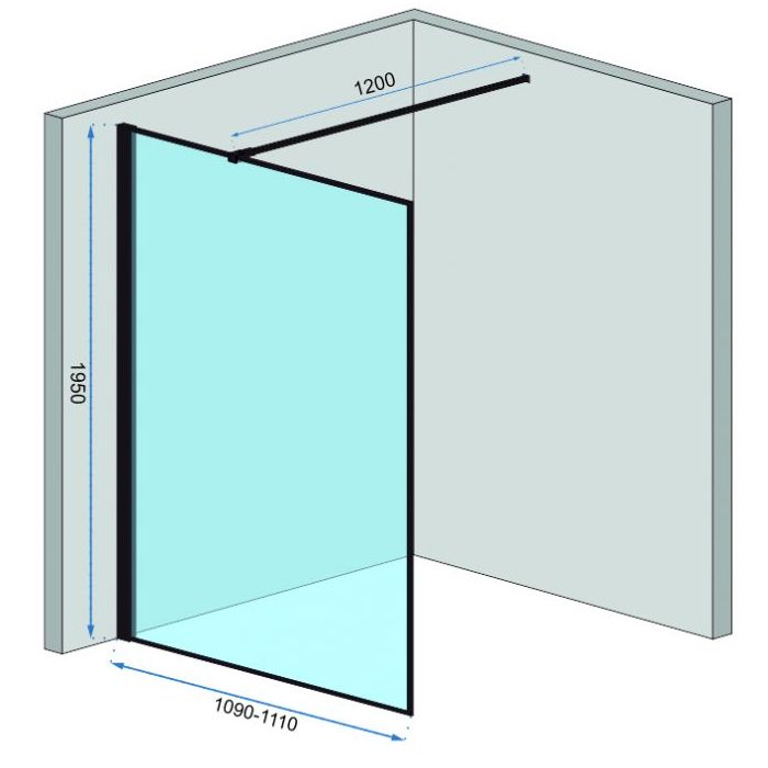 Душевая перегородка из закаленного безопасного стекла толщиной 8 мм. Алюминиевый профиль черного матового цвета. Размеры перегородки от 80 до 120 см.