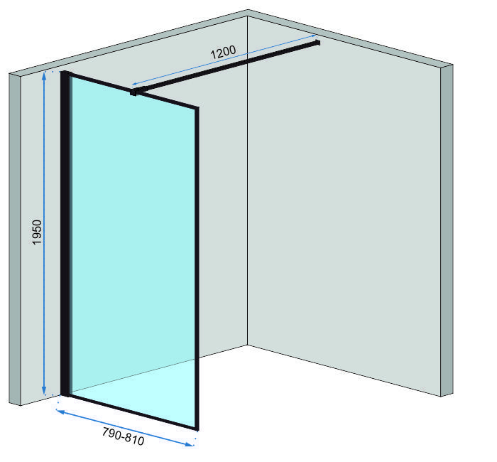 Душевая перегородка из закаленного безопасного стекла толщиной 8 мм. Алюминиевый профиль черного матового цвета. Размеры перегородки от 80 до 120 см.
