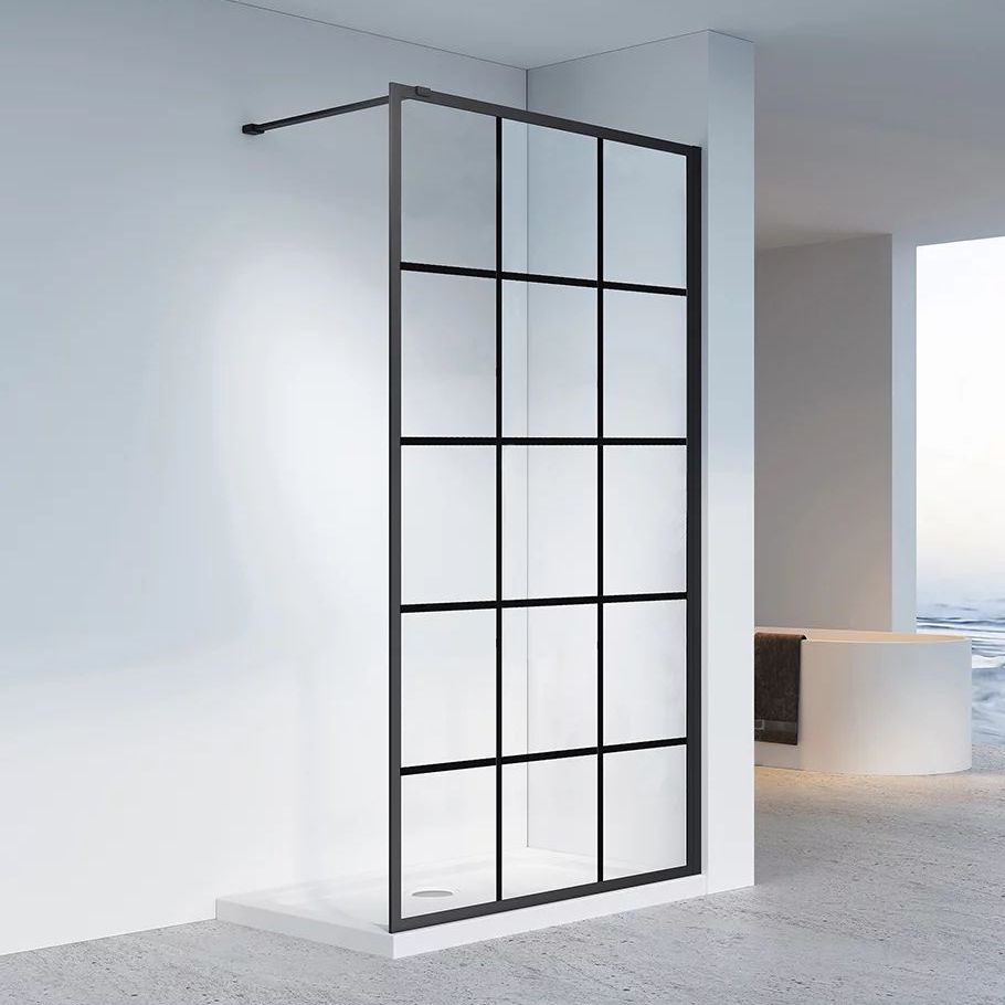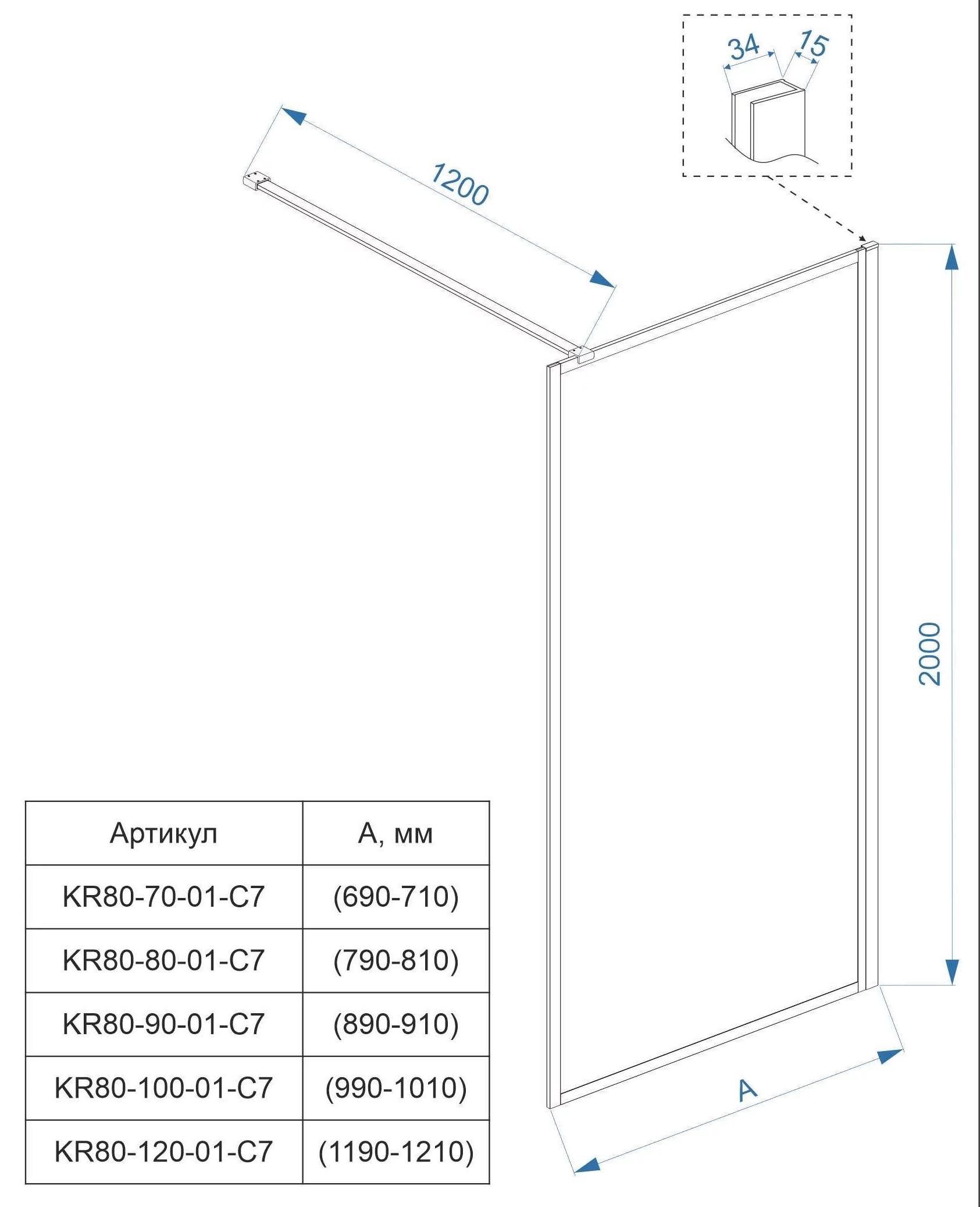 Душевая перегородка. Стекло закалённое безопасное 8 мм. Профиль анодированный алюминий. Цвет - черный. Усиливающая пристенная штанга из нержавеющей стали - 1200 мм. Штангу можно подрезать под необходимый размер.