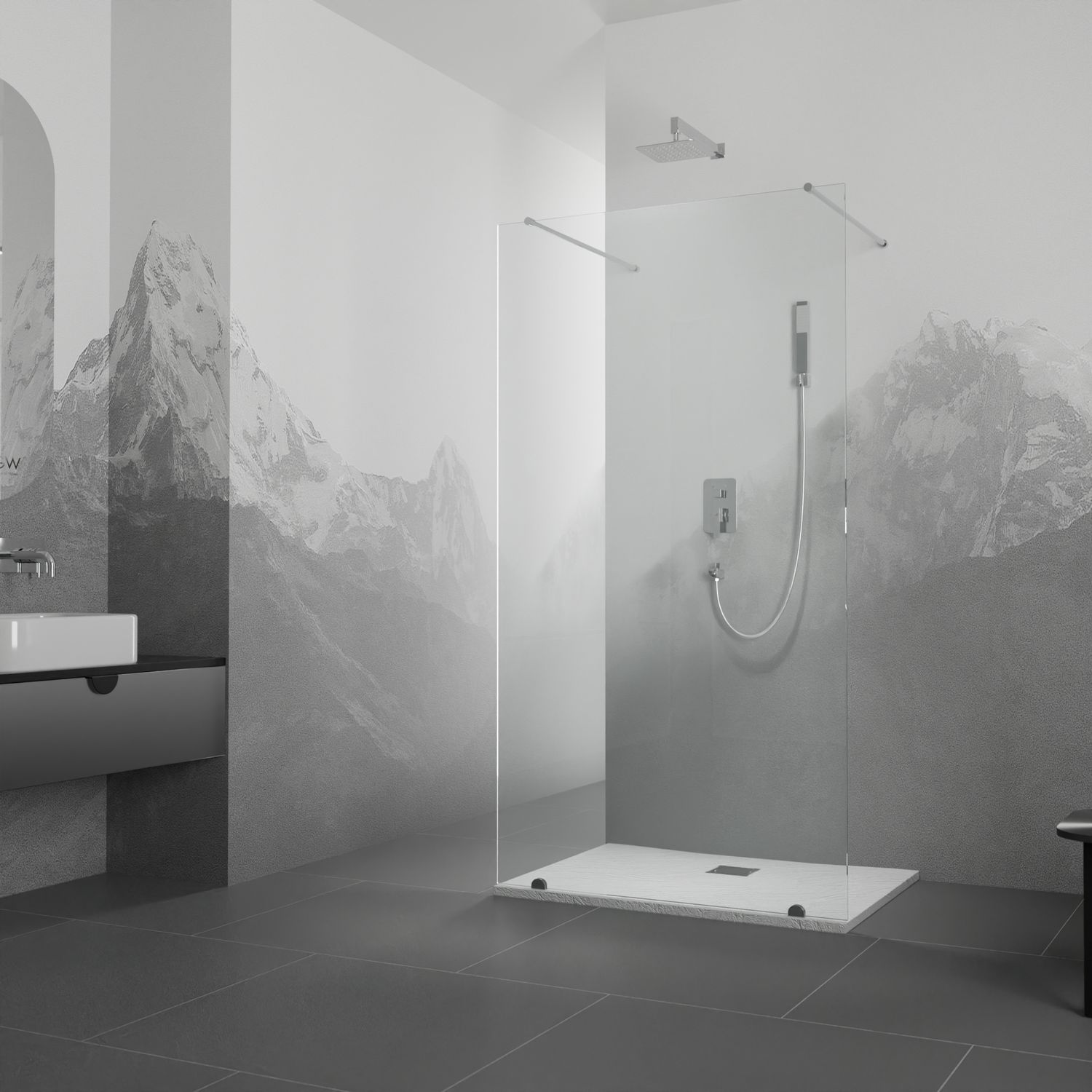 Представляем Вашему вниманию лаконичную перегородку для душа из серии Walk In. Данная модель представлена в условных размерах. Надежная толщина стекла - 8 мм, рассчитанная на активно-агрессивное использование, подойдет для самых взыскательных и требовательных. В изделии выглядит основательно и дорого. Данная модель является идеальным решением для ванных комнат, поскольку эта конструкция позволяет грамотно организовать пространство. Технология Easy Clean защищает поверхность душевой перегородки и избавляет от известкового налета. Душевая перегородка стационарная. Два кронштейна RGW O-202CP длинной 730-1200 мм. Трап или поддон приобретается отдельно.