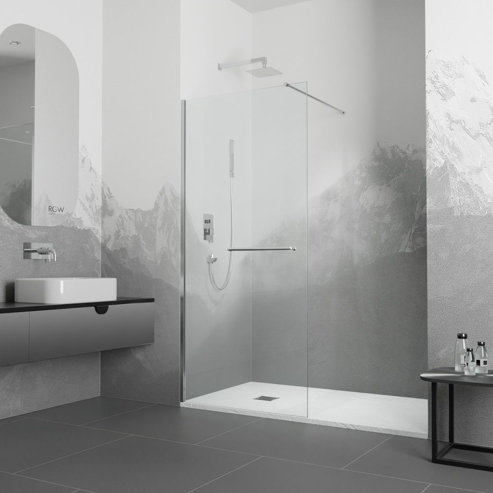 Представляем Вашему вниманию лаконичную перегородку для душа из серии Walk In. Данная модель представлена в 2-х условных размерах. Надежная толщина стекла - 8 мм, рассчитанная на активно-агрессивное использование, подойдет для самых взыскательных и требовательных. В изделии выглядит основательно и дорого. Данная модель является идеальным решением для ванных комнат, поскольку эта конструкция позволяет грамотно организовать пространство. Технология Easy Clean защищает поверхность душевой перегородки и избавляет от известкового налета. Душевая перегородка стационарная. Длина кронштейна 1200 мм. Трап или поддон приобретается отдельно. Круглая ручка.