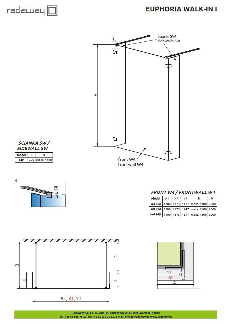 Душевое ограждение из фронтального стекла и двух боковых стенок. Безопасное закалённое стекло толщиной 8 мм, согласно стандарту PN:EN 12150:1. Система крепления к стене с помощью стабилизаторов - обеспечивает прочную конструкцию ограждения. Петли изнутри вровень со стенкой, что облегчает очистку стекол. Элегантная хромированная фурнитура. Эту душевую перегородку возможно установить так на поддоне, как и непосредственно на пол. Защитное покрытие помогает содержать чистоту на поверхности стекол. Благодаря водоотталкивающим свойствам капли воды не удерживаются на поверхности стекла и быстро стекают, не оставляя следа. Это изделие подлежит модификациям. Изделие доступно в нескольких вариантах стекла. Возможность сделать гравировку на стекле. Держатель для полотенец под заказ - крепится к 2 точкам на стекле, либо к стеклу и стене. Если нет технических возможностей применить стандартные наружные пристенные скобы, можно заказать нестандартную кабину с внутренними пристенными скобами. По умолчанию вся продукция укомплектована горизонтальными стабилизаторами. Если нет возможности прикрепить этот стабилизатор к стене, разрешите предложить Вам телескопический стабилизатор к потолку. Максимальная высота потолка 3 метра.