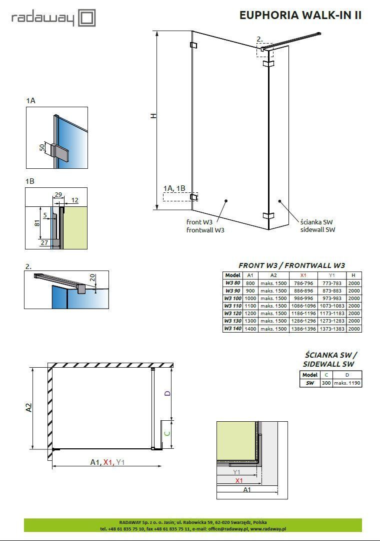 Душевое ограждение из фронтального стекла и боковой стенки. Безопасное закалённое стекло толщиной 8 мм, согласно стандарту PN:EN 12150:1. Система крепления к стене с помощью стабилизаторов - обеспечивает прочную конструкцию кабины. Петли изнутри вровень со стенкой, что облегчает очистку стекол. Элегантная хромированная фурнитура. Эту душевую кабину возможно установить так на поддоне, как и непосредственно на пол. Защитное покрытие помогает содержать чистоту на поверхности стекол. Благодаря водоотталкивающим свойствам капли воды не удерживаются на поверхности стекла и быстро стекают, не оставляя следа. Это изделие подлежит модификациям. Изделие доступно в нескольких вариантах стекла. Возможность сделать гравировку на стекле. Держатель для полотенец под заказ - крепится к 2 точкам на стекле, либо к стеклу и стене. Если нет технических возможностей применить стандартные наружные пристенные скобы, можно заказать нестандартную кабину с внутренними пристенными скобами. По умолчанию вся продукция укомплектована горизонтальными стабилизаторами. Если нет возможности прикрепить этот стабилизатор к стене, разрешите предложить Вам телескопический стабилизатор к потолку. Максимальная высота потолка 3 метра.