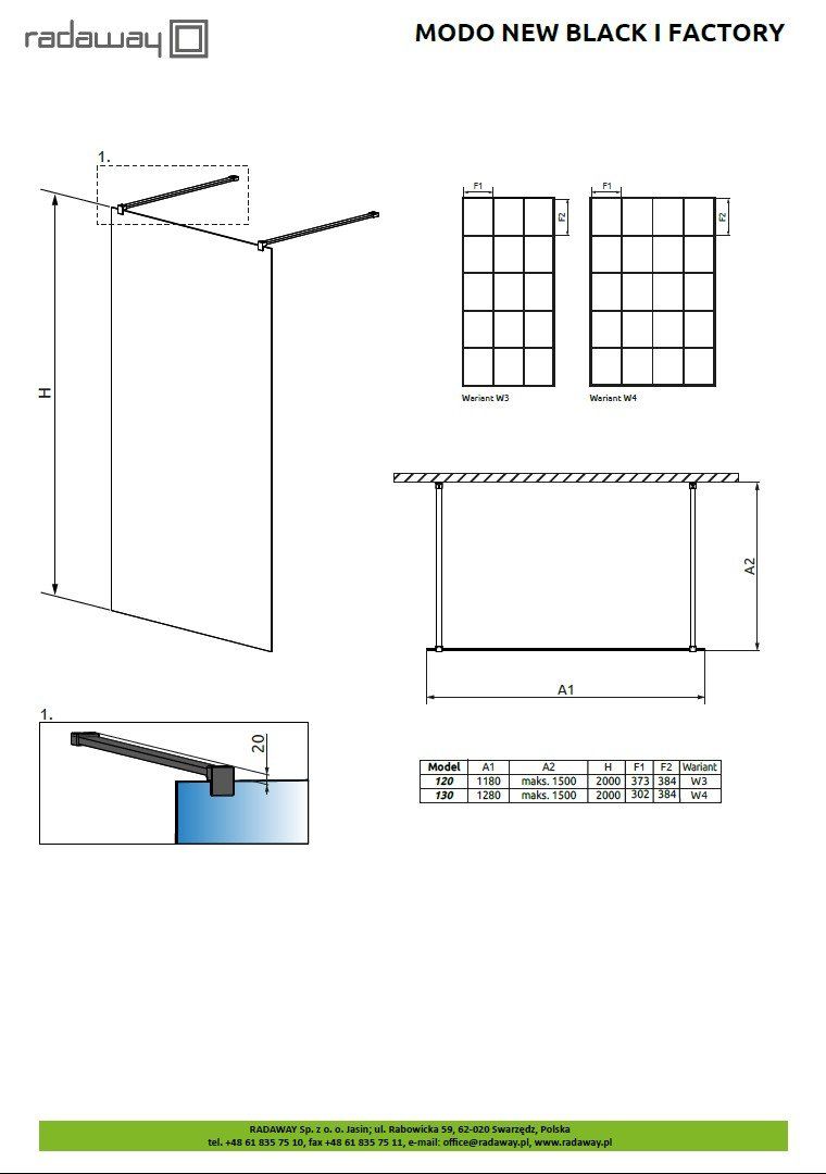 Безопасное закалённое стекло толщиной 10 мм, согласно стандарту PN:EN 12150:1. Система крепления к стене с помощью стабилизаторов - обеспечивает прочную конструкцию кабины. Элегантная черная матовая фурнитура. Эту душевую перегородку возможно установить так на поддоне, как и непосредственно на пол. Продукция подходит для инвалидов. Защитное покрытие помогает содержать чистоту на поверхности стекол. Благодаря водоотталкивающим свойствам капли воды не удерживаются на поверхности стекла и быстро стекают, не оставляя следа. Это изделие подлежит модификациям. Возможность сделать гравировку на стекле.