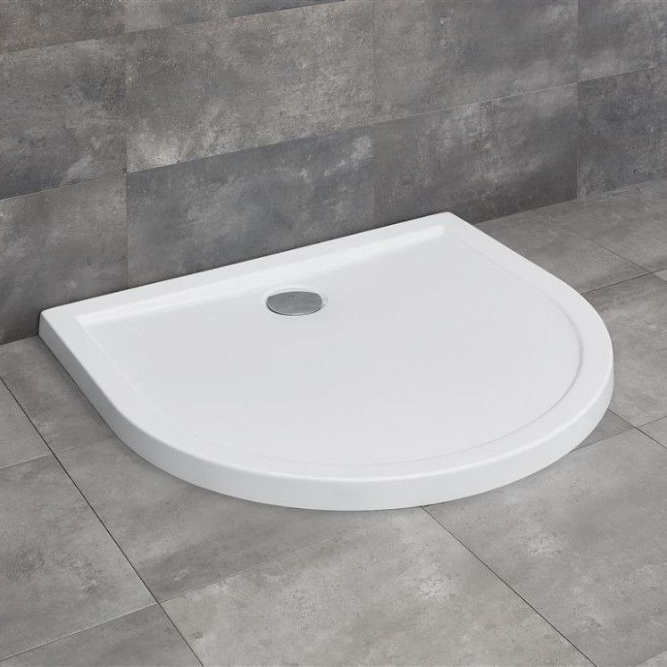 Пристенный полукруглый поддон для монтажа непосредственно на пол (необходимо приклеить на раствор или пену с низким коэффициентом расширения) 100x90 см, высота поддона - 5 см, отверстие под сифон Ø 90 мм