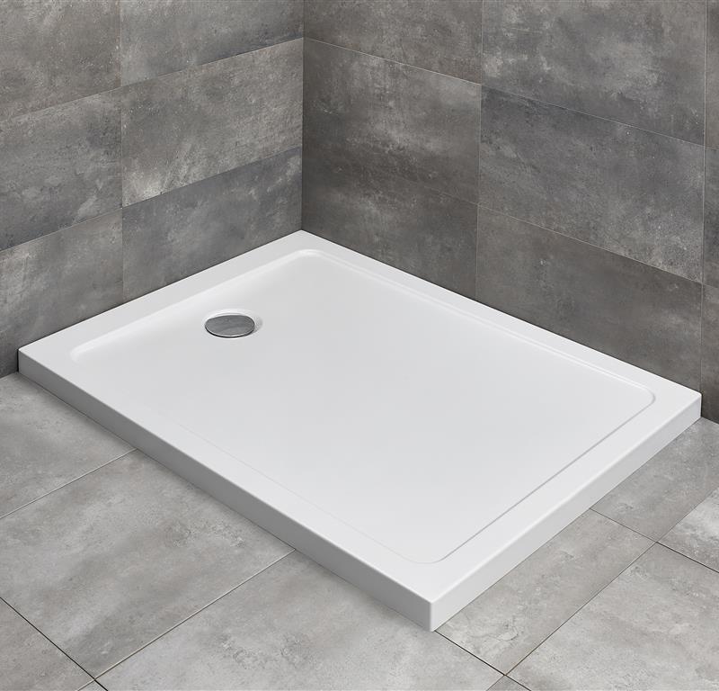 Плоский прямоугольный поддон для монтажа непосредственно на пол (необходимо приклеить на раствор или пену с низким коэффициентом расширения) 90x70, 100x70, 100x80, 120x70, 120x80, 120x90, 140x80 см, высота поддона - 5,5 см, отверстие под сифон Ø 90 мм