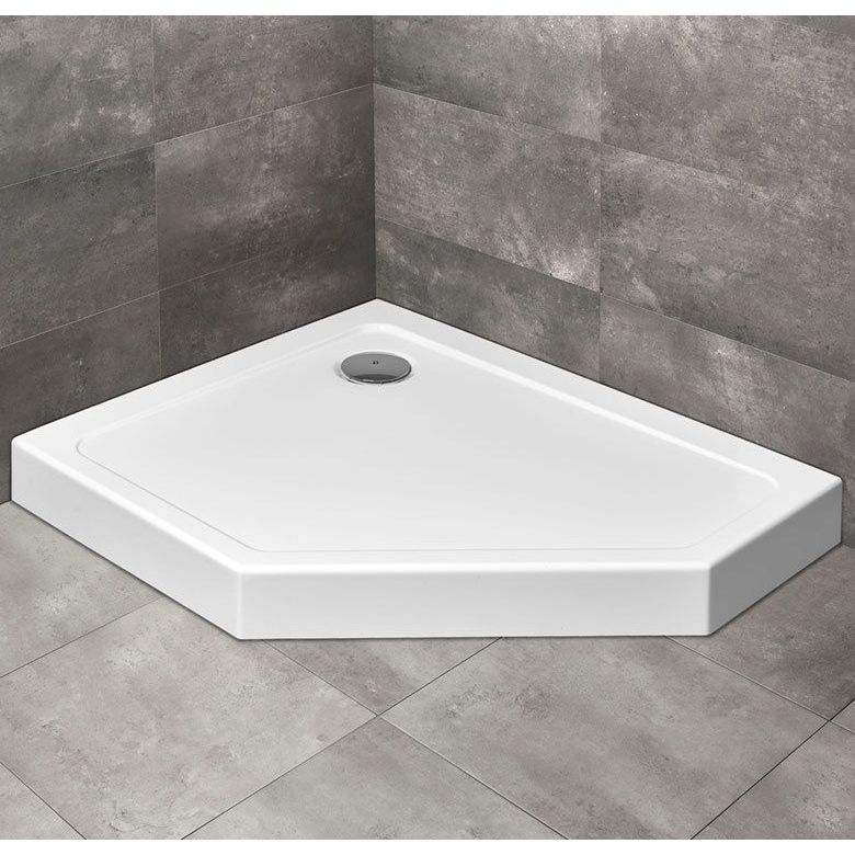 Цельнолитой пятиугольный поддон 100x80, 100x90 см, высота поддона - 11,5 см, отверстие под сифон Ø 90 мм