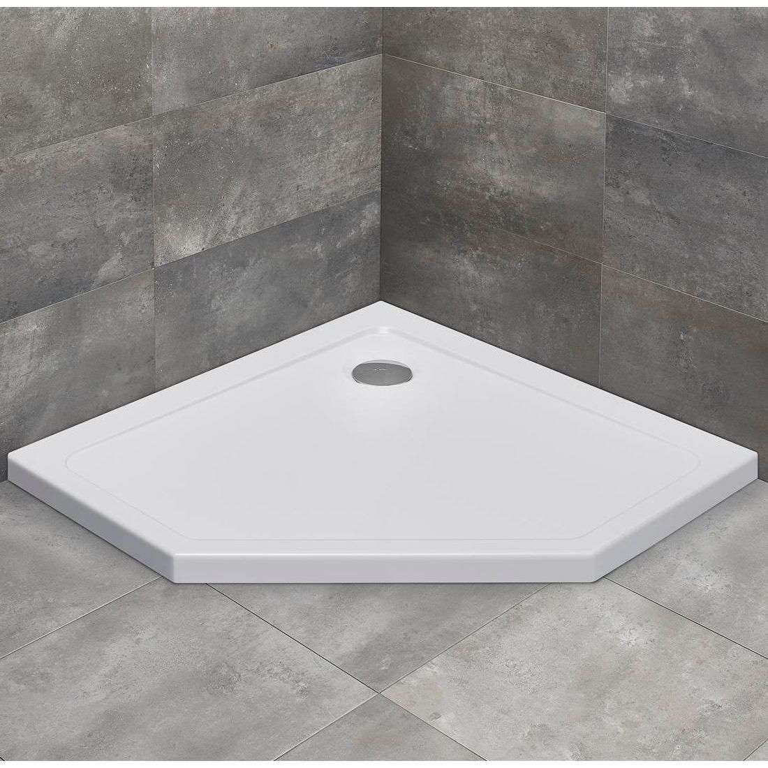 Плоский пятиугольный поддон для монтажа непосредственно на пол (необходимо приклеить на раствор или пену с низким коэффициентом расширения) 80x80, 90x90, 100x100 см, высота поддона - 5 см, отверстие под сифон Ø 90 мм