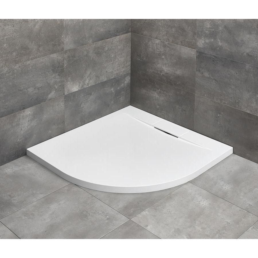 Плоский поддон для душа из искусственного мрамора. Возможен монтаж вровень с полом, на полу, а также на подиуме из кирпича. Поверхность можно легко очистить. Сливное отверстие Ø 50 мм.