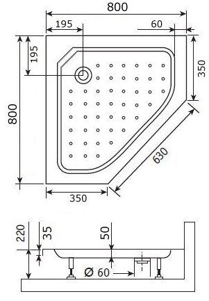 Благодаря уникальной трапециевидной форме поддона и его размерам угловая конструкция душа занимает мало места и без труда размещается даже в небольшой ванной комнате. Встроенный металлический каркас поддона устанавливается на стадии монтажа и обеспечивает максимальную надежность конструкции и устойчивость на протяжении всего срока эксплуатации. Оцинкованный профиль из стали 1,5 мм устойчив к коррозии и окислению. Весовая нагрузка до 180 кг равномерно распределяется по 4-6 точкам поддона, предотвращая появление разломов и трещин.
