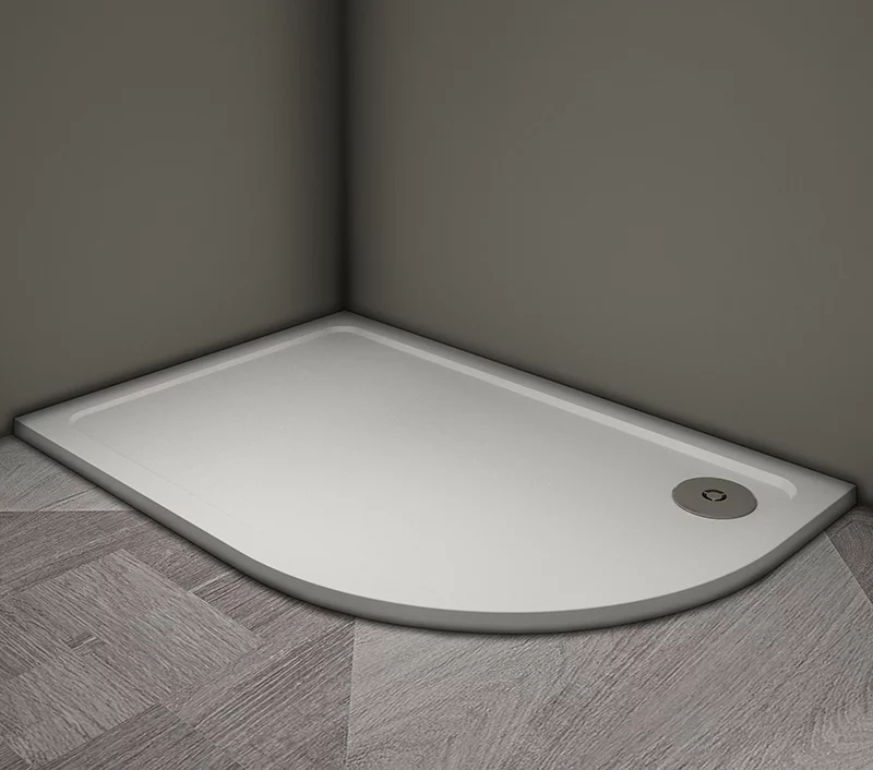Душевой поддон асимметричный. Материал: искусственный камень. Цвет - белый. Поверхность глянцевая. Сифон Ø 90 мм приобретается отдельно. Максимальная нагрузка на поддон 300 кг.