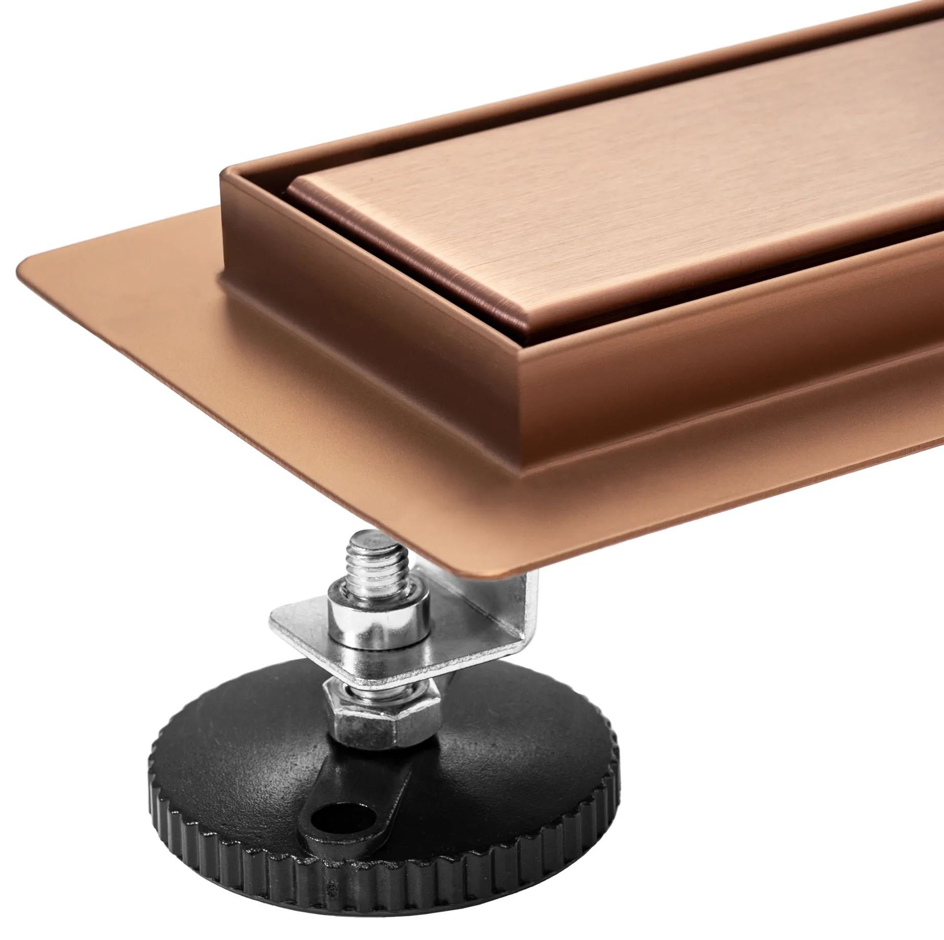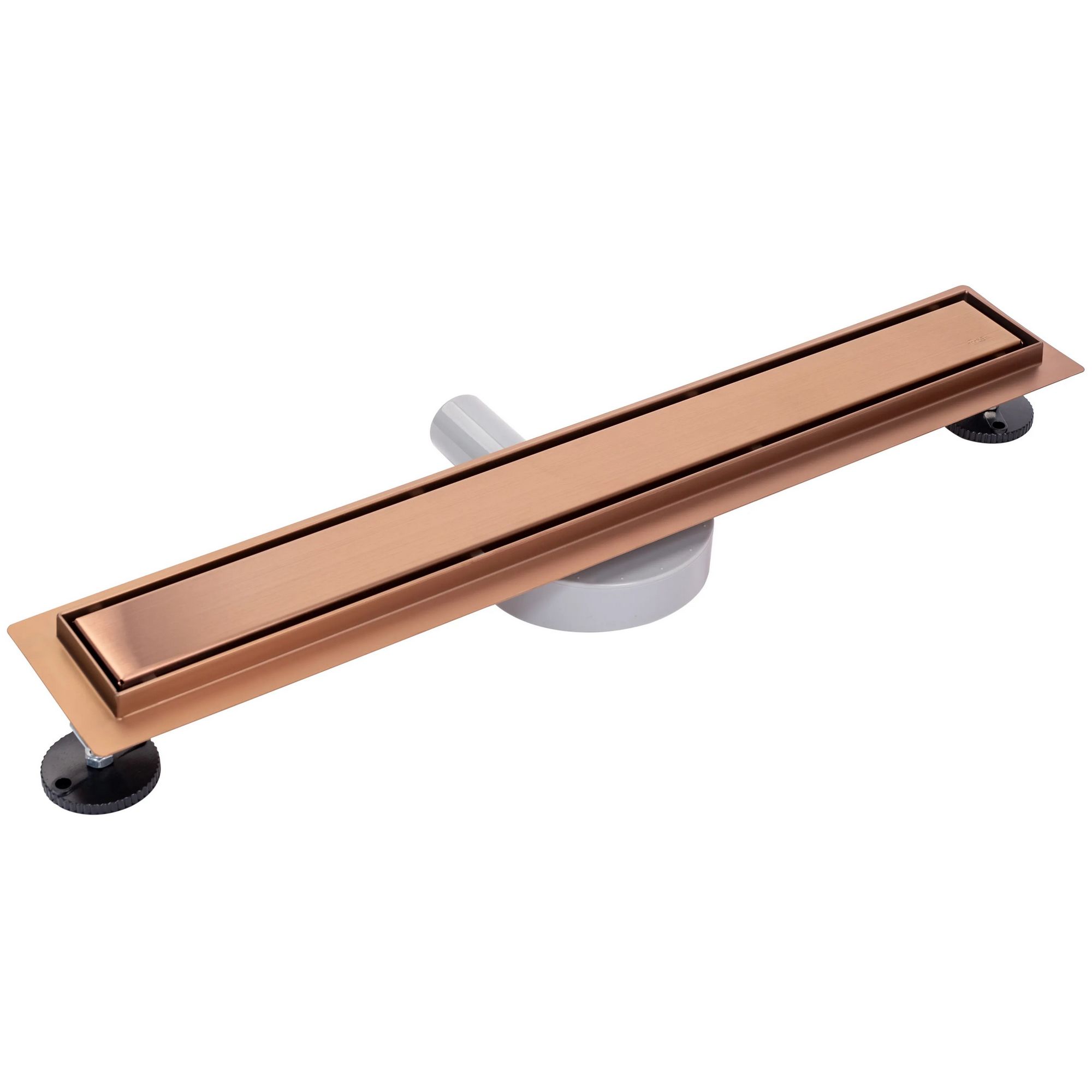 Душевой трап в размере от 60 до 80 см с решеткой из нержавеющей стали. Цвет решетки - матовая медь.