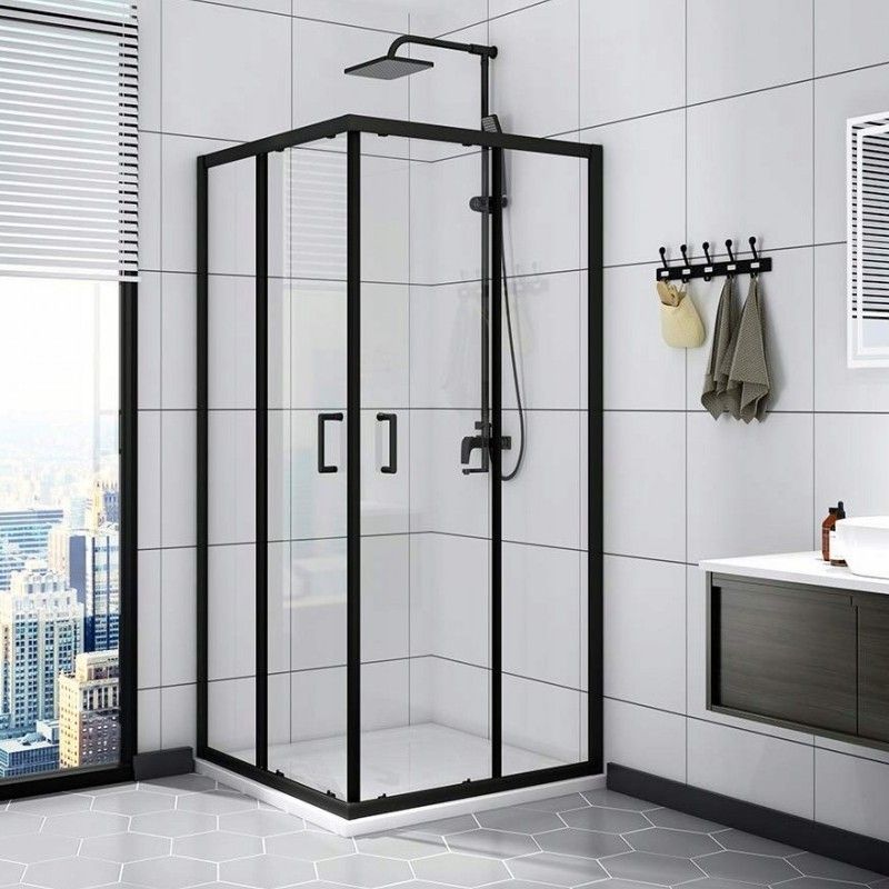 Квадратный душевой уголок с раздвижными дверями. Двери выполнены из безопасного закаленного стекла толщиной 5 мм, неподвижные стенки толщиной 4 мм.