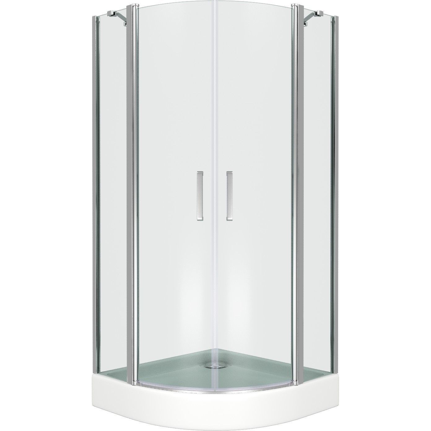Полукруглый душевой уголок с двойными распашными в обе стороны дверьми с подъемным механизмом. Безопасное закаленное стекло толщиной 6 мм.