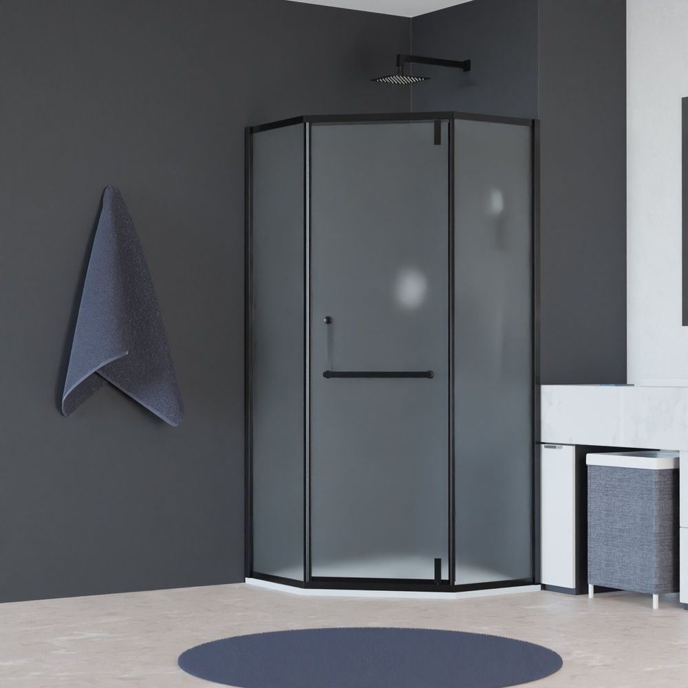 Душевой уголок трапеция с распашной дверью. Стальные профили создают цельную конструкцию душевого уголка. Трап или поддон приобретается отдельно.