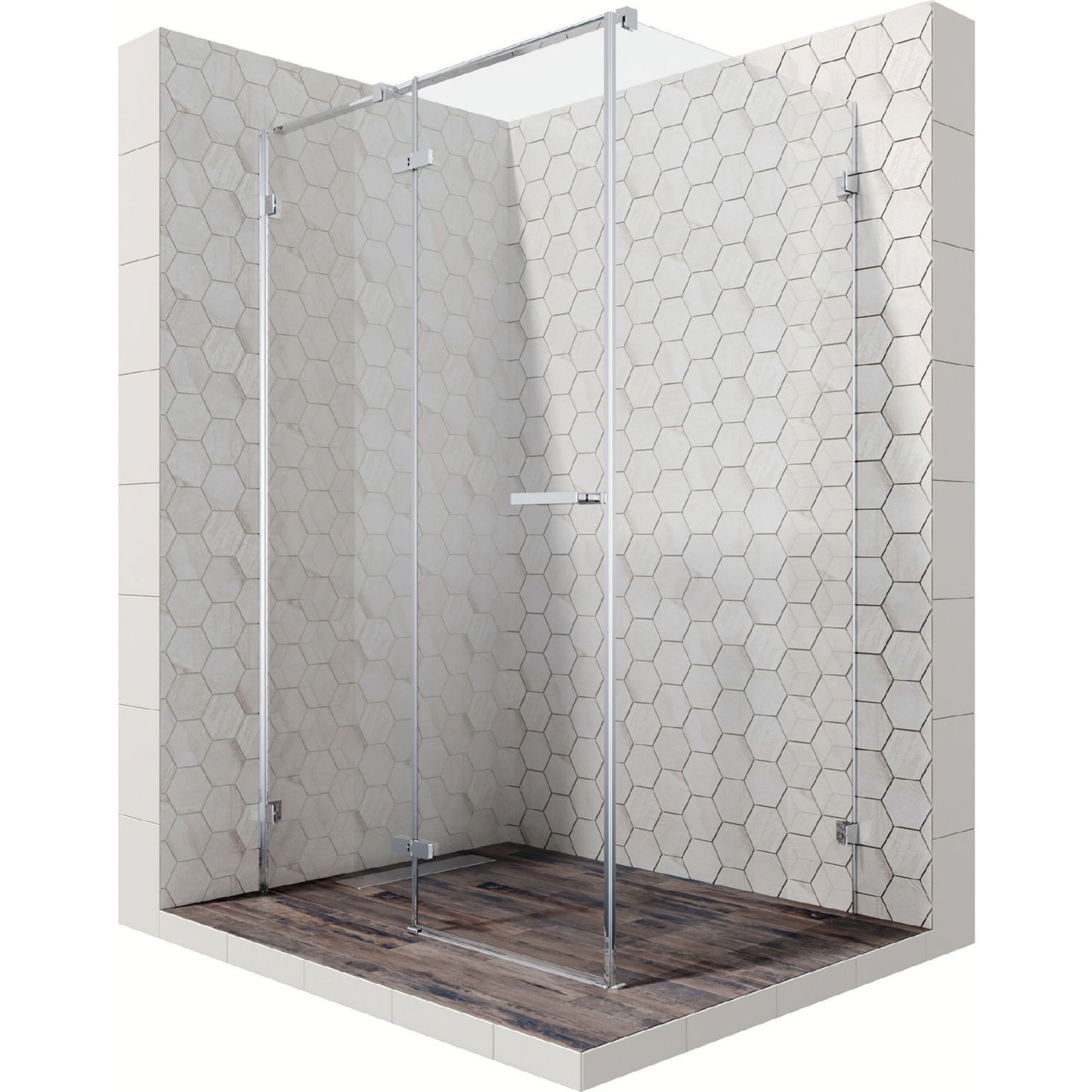 Квадратные уголки дополнительно фиксируют ограждение. Сочетание массивных компонентов и качественного хромированного покрытия в исполнении SlimChrome+ обеспечивает наивысшую прочность всех металлических элементов. В результате - 100% герметичность и длительное использование ограждения.