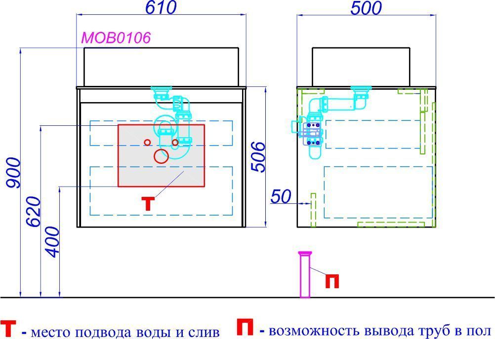 Гарнитуры Mobi выпускаются в четырёх размерах: 60, 80, 100 и 120 см. Фасады, боковины и столешницы из МДФ толщиной всего 10 мм. Коллекция Mobi гармонично вписывается в интерьер любой современной ванной комнаты. Так как существует возможность комбинировать фасады и корпуса трех цветов: бетон светлый, дуб балтийский и белый глянец. Подходит любой наставной умывальник. При этом умывальник может устанавливаться в любом месте, а не только центру. На тумбы 100 и 120 см можно установить один или два умывальника. Тумбы Mobi c двумя ящиками: основной и внутренний, скрытый за фасадом. Направляющие ящиков от австрийской фирмы «Blum» обеспечивают плавное и мягкое закрывание. Производитель на них даёт вечную гарантию. Внутренний ящик тумб укомплектован пластиковым разделителем для хранения различных мелочей. Независимо от цвета корпусов и фасадов внутренняя отделка ящиков комбинированная: боковины – цвет бетон светлый, дно – дуб балтийский. Конструкция тумб позволяет подвести коммуникации как из стены, так и из пола. В комплект тумб Mobi входит специальный сифон, позволяющий экономить пространство мебели. Поэтому внутренний ящик тумб полноразмерный. В зеркальных шкафах Mobi отсутствуют перегородки – это позволяет максимально использовать внутреннее пространство. В комплект тумбы входи 1 накладной умывальник Олимпия 560.