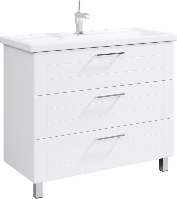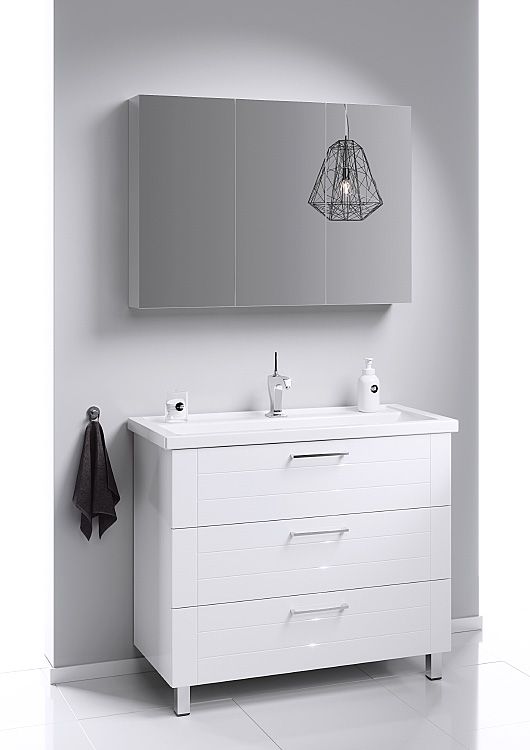 Напольная тумба под умывальник Фостер с тремя ящиками Ящики тумб оснащены скрытыми направляющими австрийской фирмы Blum с системой мягкого закрывания, на которые производитель дает вечную гарантию. Фасады выполнены из МДФ, окрашенный глянцевой эмалью, корпус мебели - ЛДСП, окрашенный глянцевой эмалью. Керамический умывальник Kirovit входит в комплект тумюы.