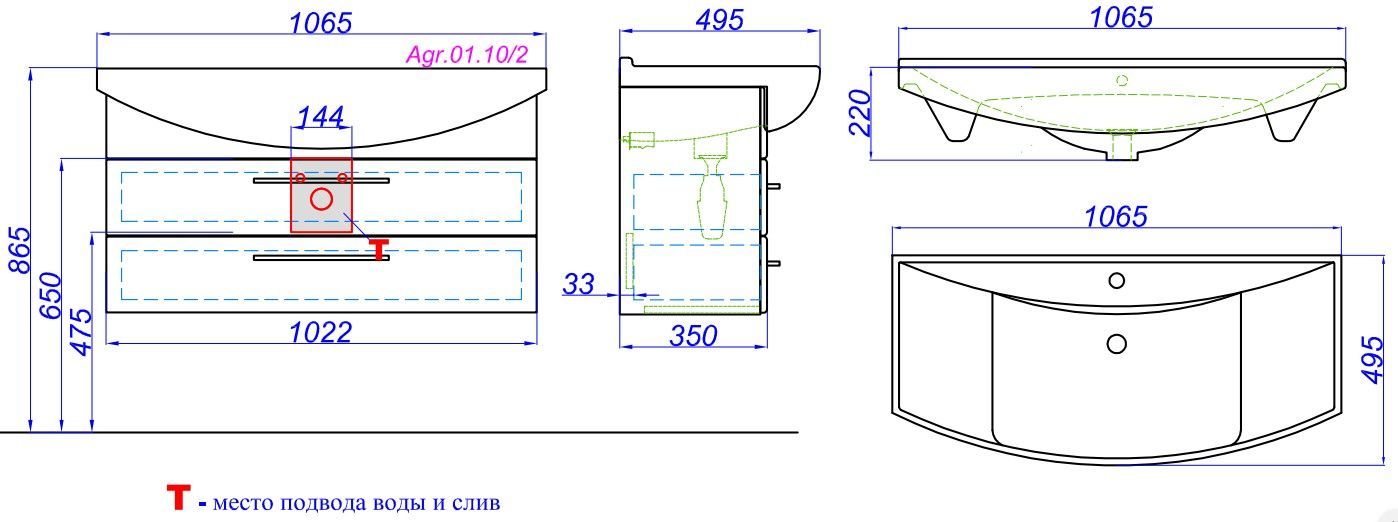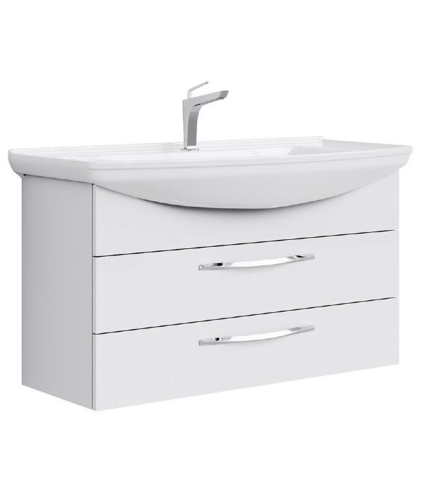 Подвесная тумба с умывальником, два ящика. Материал корпуса - ЛДСП, фасады - МДФ, покрытие - глянцевая эмаль.