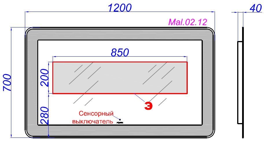 В качестве зеркального элемента для коллекции мебели Malaga предлагаются зеркала 90 и 120 см с широкой полосой пескоструя (абразивной холодной обработкой) и светодиодной подсветкой по периметру. Также зеркало оснащено сенсорным выключателем.
