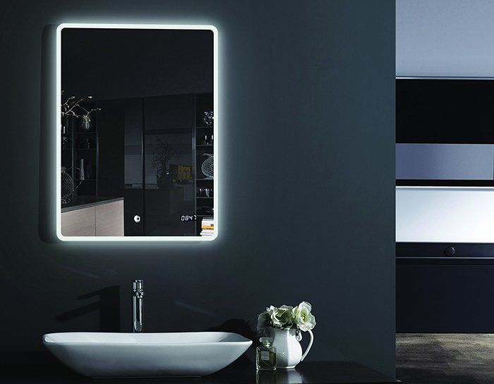 Прямоугольное зеркало для ванной комнаты. Светодиодная подсветка, сенсорное включение, подогрев зеркала, встроенные часы. Материал зеркала - металл. Мощности зеркал: 42, 51, 51, 76, 96 Вт. Вертикальная и горизонтальная навеска.