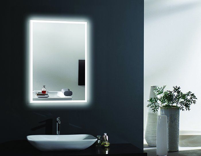 Прямоугольное зеркало для ванной комнаты. Светодиодная подсветка, акриловая окантовка, бесконтактное включение, подогрев зеркала. Материал зеркала - металл. Мощность зеркал: 50, 93, 95 Вт. Универсальная навеска.