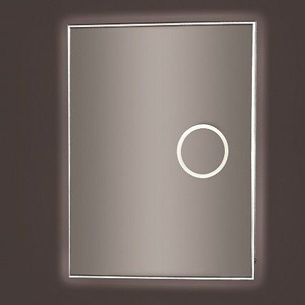 Прямоугольное зеркало для ванной комнаты. Светодиодная подсветка, бесконтактное включение, подогрев зеркала. Материал зеркала - металл. Увеличительное зеркало.