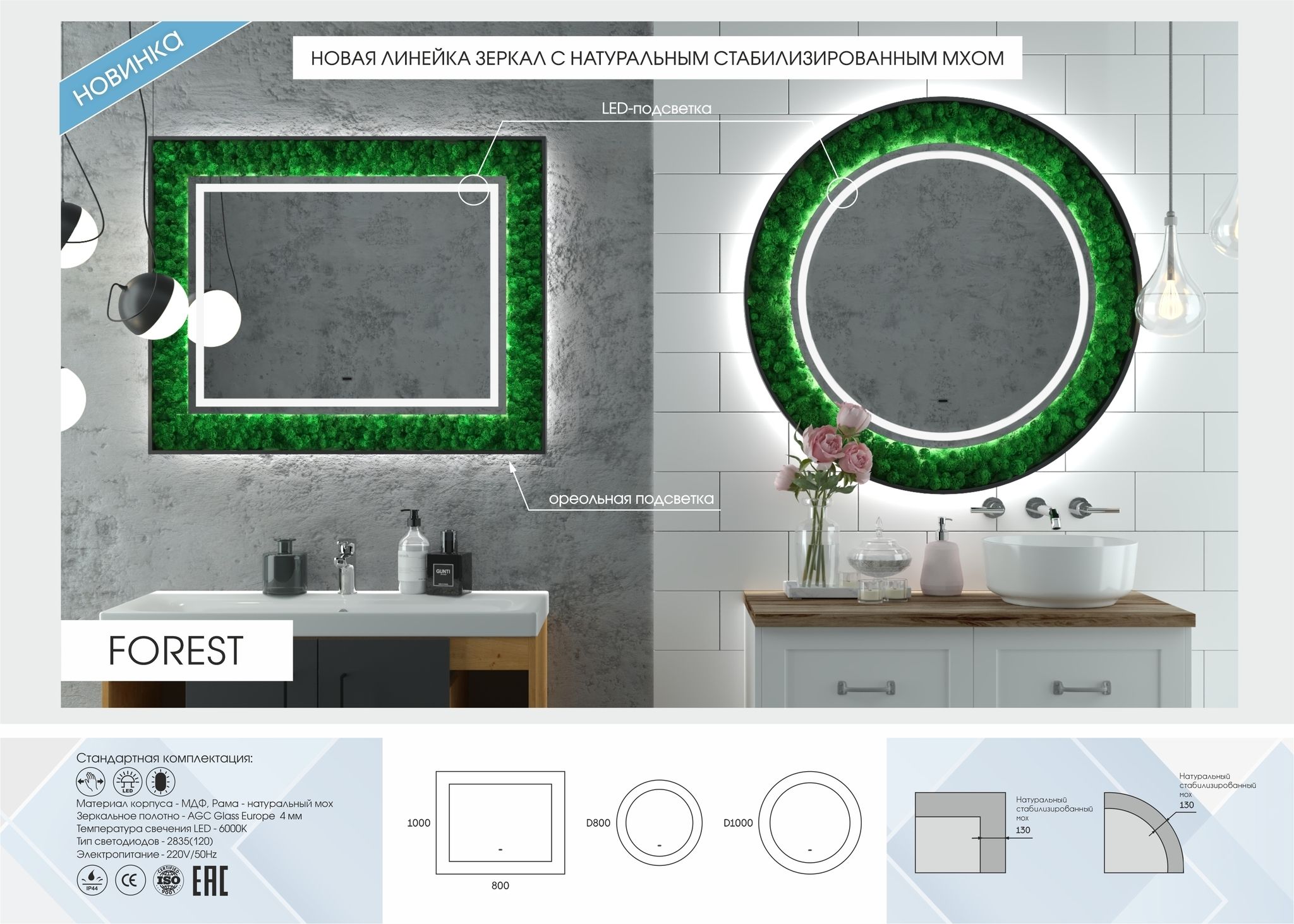 Зеркало Континент Forest LED круглое 80x80, 100x100 с натуральным мхом