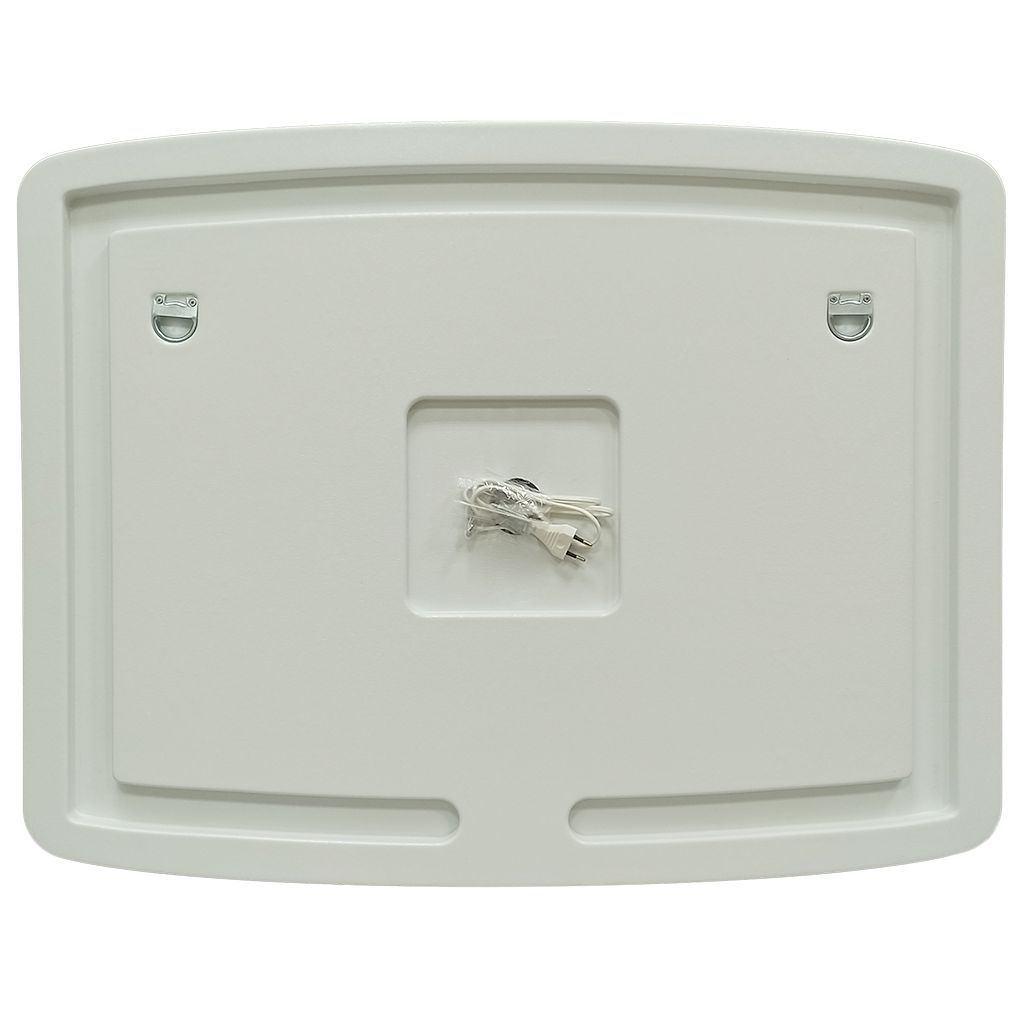 Материал корпуса пластик. Зеркальное полотно AGC Glass Europe 4 мм. Температура свечения LED - 6000K. Тип светодиодов: 2835(120). Электропитание: 220V/50Hz. Класс защиты: IP44. Стандартная комплектация: LED подсветка, сенсорное управление. Дополнительные опции: многофункциональная панель, функция антизапотевания, встроенные часы, косметическая линза с 3-х кратным увеличением.