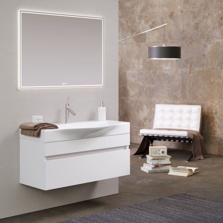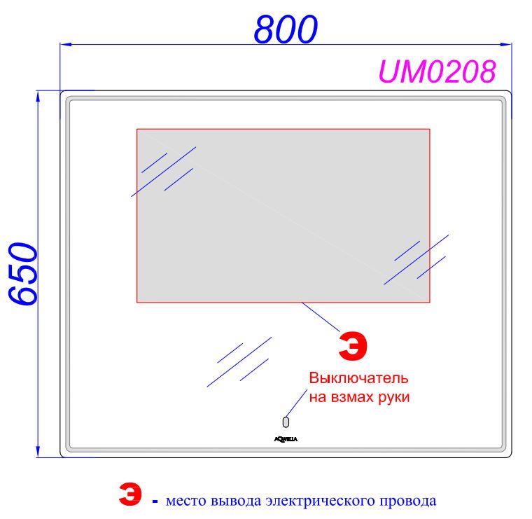 Зеркало со светодиодной подсветкой, сенсорным выключателем и регулятором освещенности.