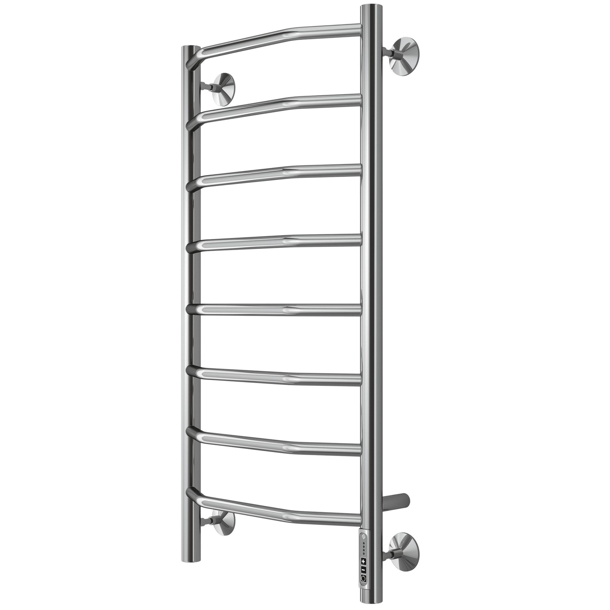 Электрический полотенцесушитель со скрытой электропроводкой и каьель-вилкой. Встроенный электрический диммер на правой части полотенцесушителя. В комплекте с монтажным набором.