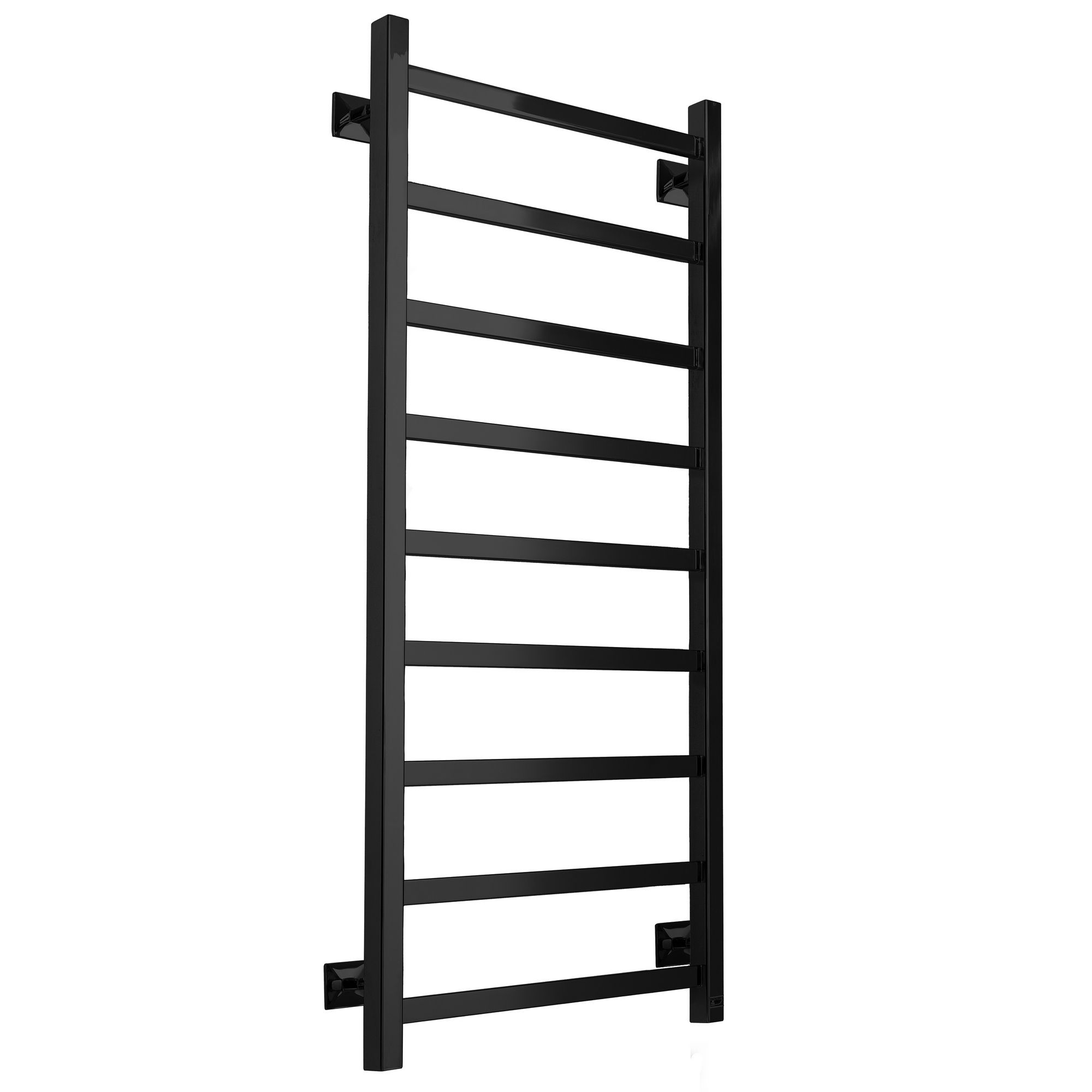 Данный полотенцесушитель сделан из квадратной профильной трубы изготовленной по специальному заказу. Окрашен черной матовой порошковой краской. Этот полотенцесушитель придаст Вашей ванной комнате очень престижный вид. В комплект к полотенцесушителю входят американки и 4 квадратных держателя, которые очень изящно подчёркивают вид данной модели. Полотенцесушитель гарантированно можно устанавливать в систему горячей воды при условии заземления подводящего трубопровода или самого полотенцесушителя. Заземление полотенцесушителя можно выполнить к винту держателя под его основанием медным проводом, сечением не менее 2,5 квадрата.