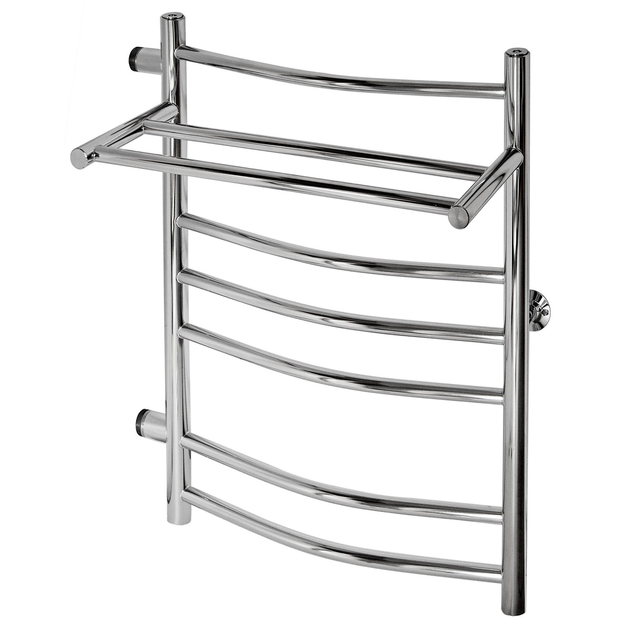 Водяной полотенцесушитель из нержавеющей стали в виде лесенки с полкой, перекладины в виде дуги. Тепловая мощность: 343, 414, 476 Вт.
