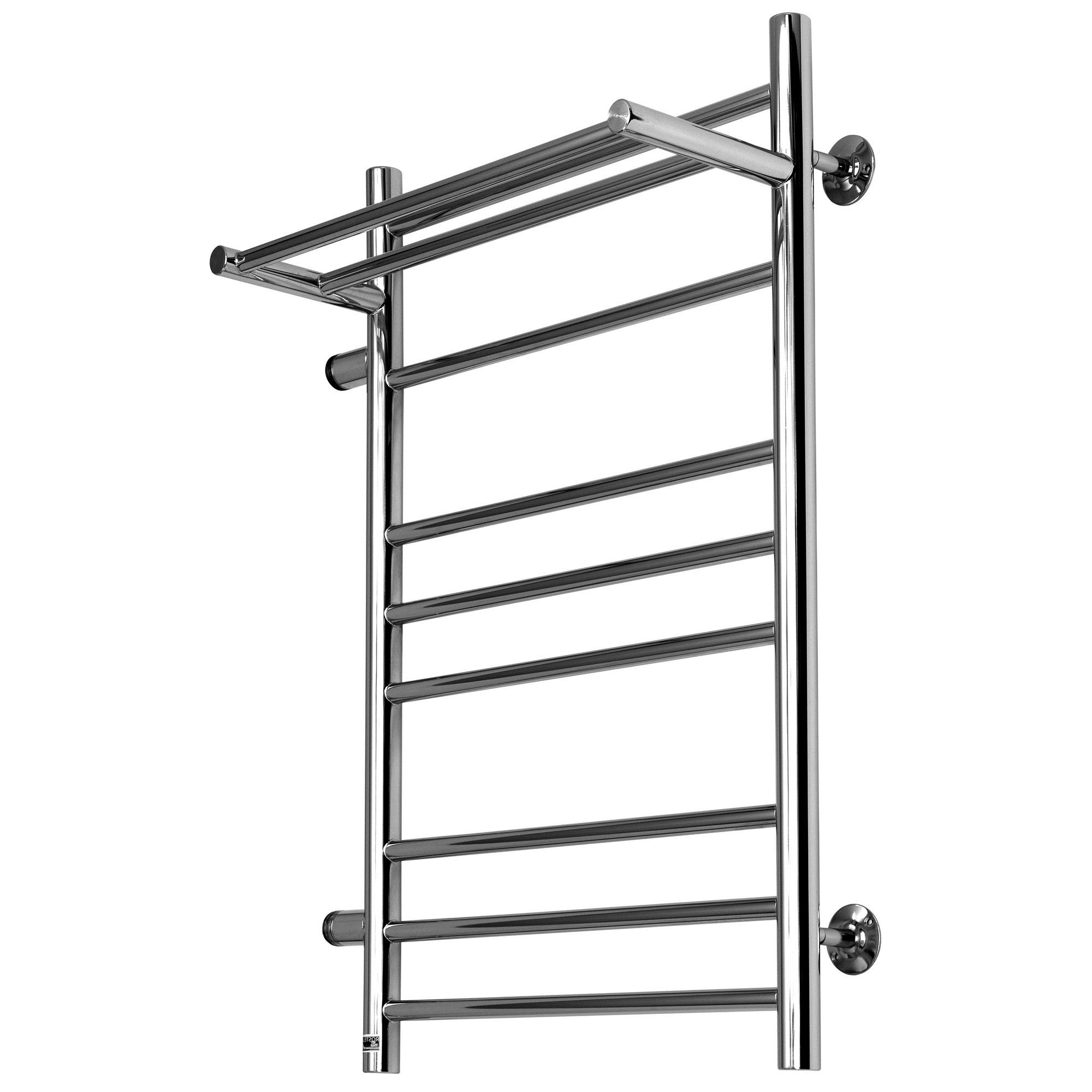 Данный полотенцесушитель с полочкой и поперечными прямыми перекладинами идеально подходит в квартиры, где раньше стояли простые М или П-образные полотенцесушители и имеется действующий выход 500 мм. Тем самым можно без особых затрат улучшить красоту Вашей ванной комнаты. Тепловая мощность: 414, 476 Вт