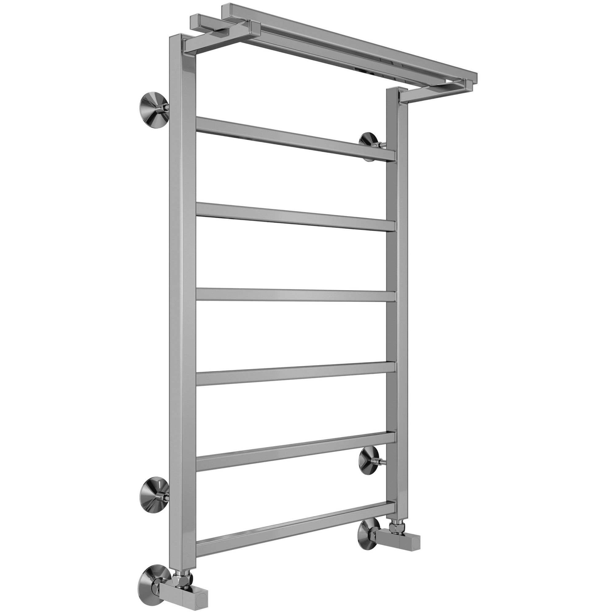 Модель Контур с полкой относится к линейке в стиле хай-тек, тяготеющей к лаконичным формам и хромированным поверхностям, и отличается наличием дополнительной прогреваемой полки для хранения и сушки полотенец. Модель изготавливается в 6-ти размерах от 800 до 1000 мм высотой и от 300 до 500 мм шириной. Комплектация: заглушка под декоративным колпачком - 1 шт, кран Маевского - 1 шт, телескопическое крепление - 4 шт, уголок со сгоном 3/4"х1/2" г/ш - 2 шт, эксцентрик -2 шт, отражатель - 2 шт.