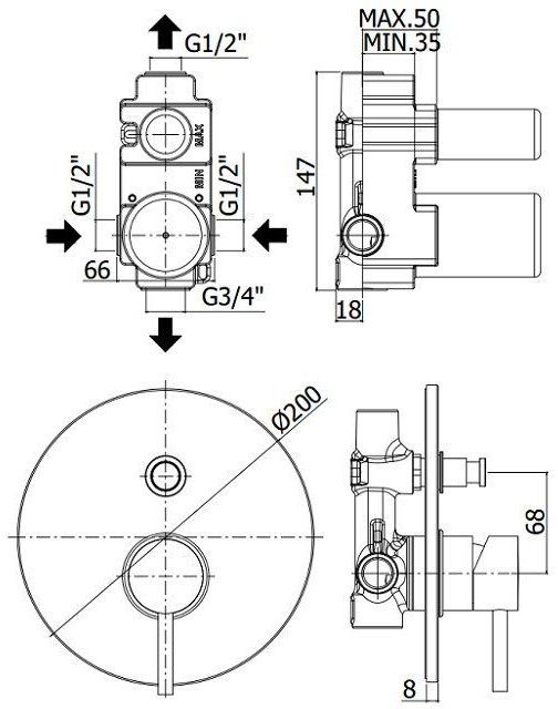Смеситель встраиваемый на 2 выхода Paffoni Light белый матовый, LIG015BO