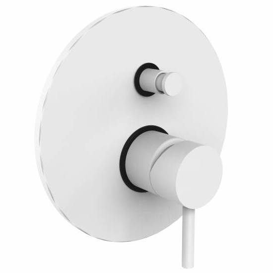 Смеситель скрытого монтажа в комплекте со встроенной частью для 2 потребителей в белом матовом цвете.