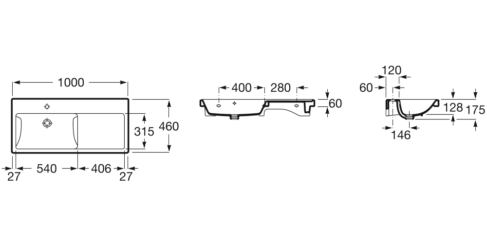 Раковина подвесная Roca The Gap 100х46 чаша слева/справа
