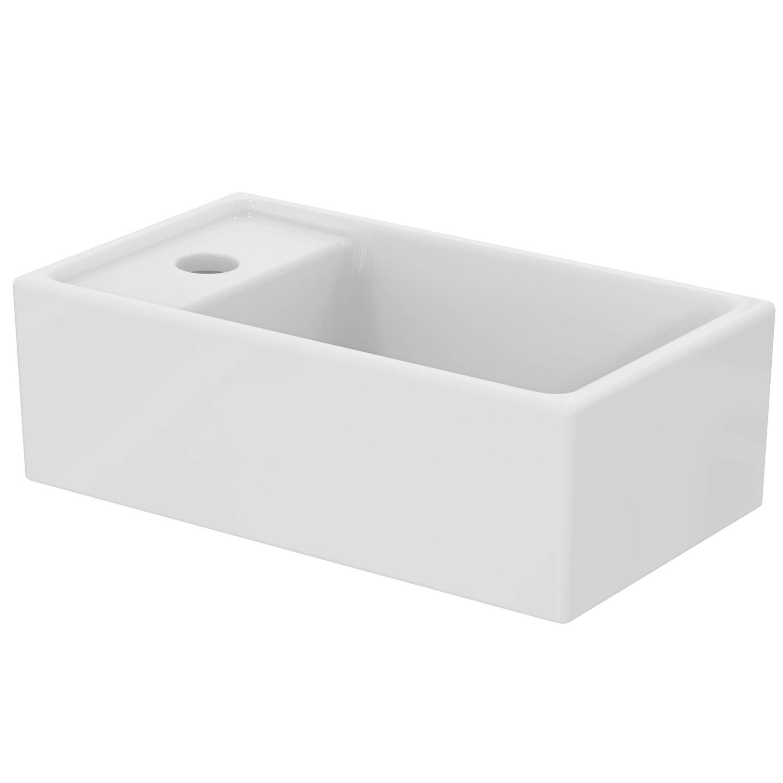 Подвесной умывальник 370x210 мм, отверстие слева или справа, белый.